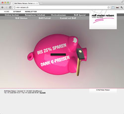 Welches Symbol würde sich für die Kommunikation dieser Tatsache besser eignen als ein waschechtes Sparschwein? Im aktuellen Reiseprospekt, als Web- und TV-Clip, auf der Webpage oder auf dem Schaufenster - inklusive QR-Tag Verlinkung zum dazugehörigen Wettbewerb: Das Sparschwein ist allgegenwärtig!